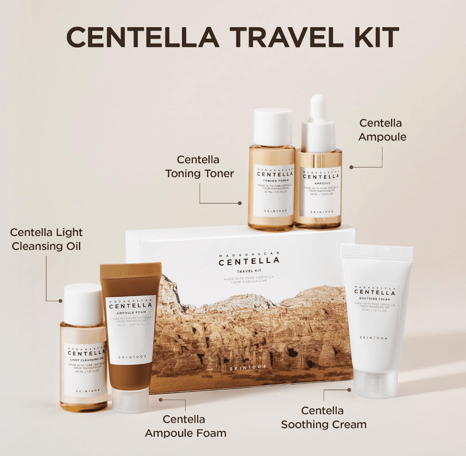 A simple, calming set with everything in one place — cleanser, toner, and moisturizer. Easy to pack without having to think through each step.