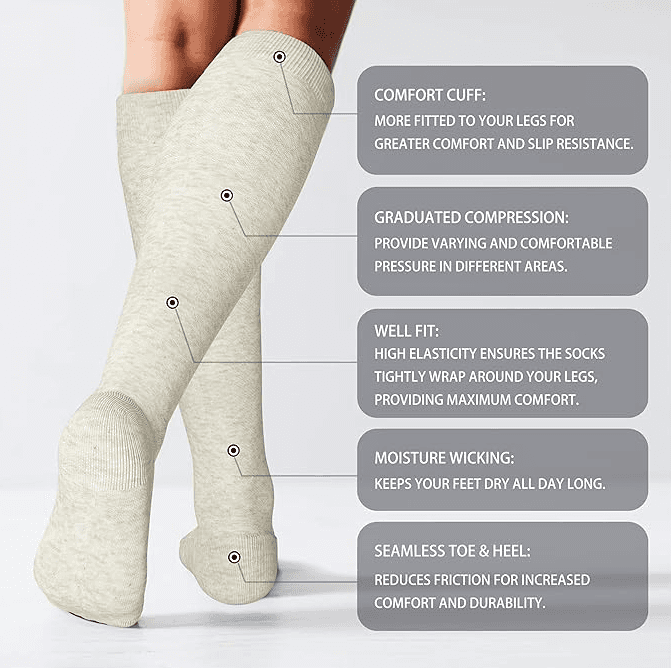 An essential if you’re dealing with swelling — they help support circulation and reduce pressure in your legs and feet. Lightweight enough to wear comfortably, with enough compression to last throughout the day.
