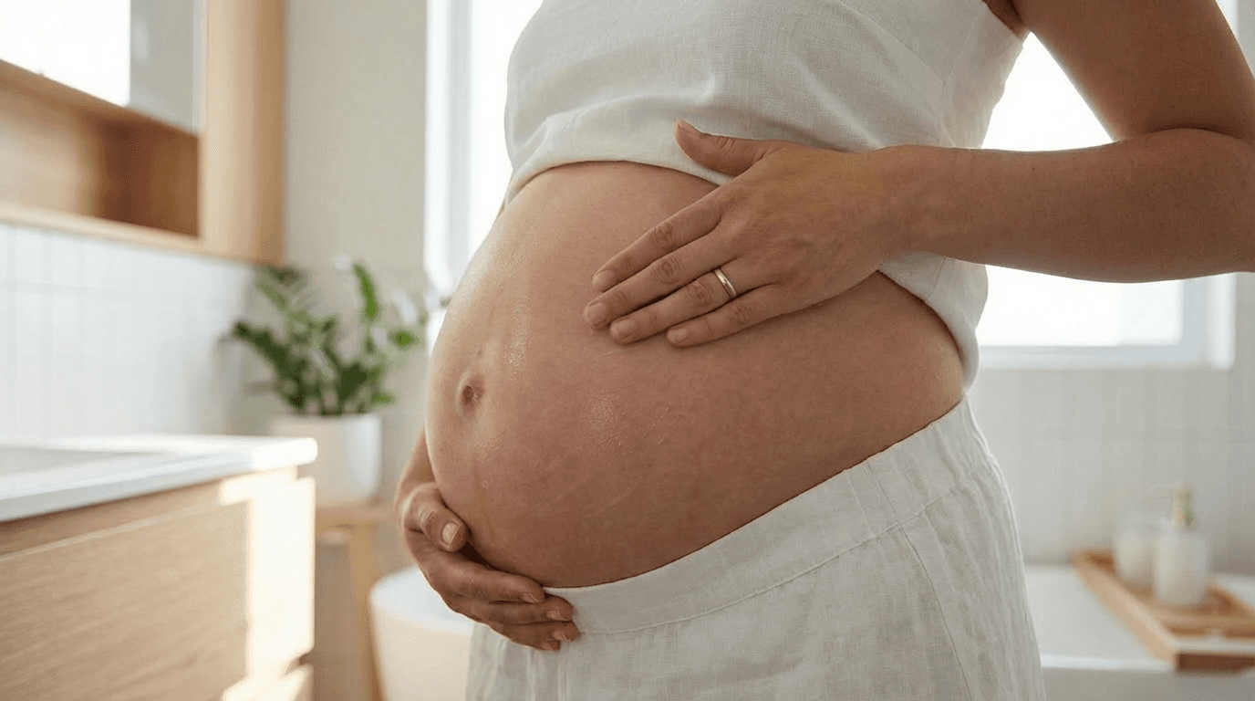 Ever since I found out I was pregnant, stretch marks were always in the back of my mind. As my belly grew, the dryness and itchiness came with it.